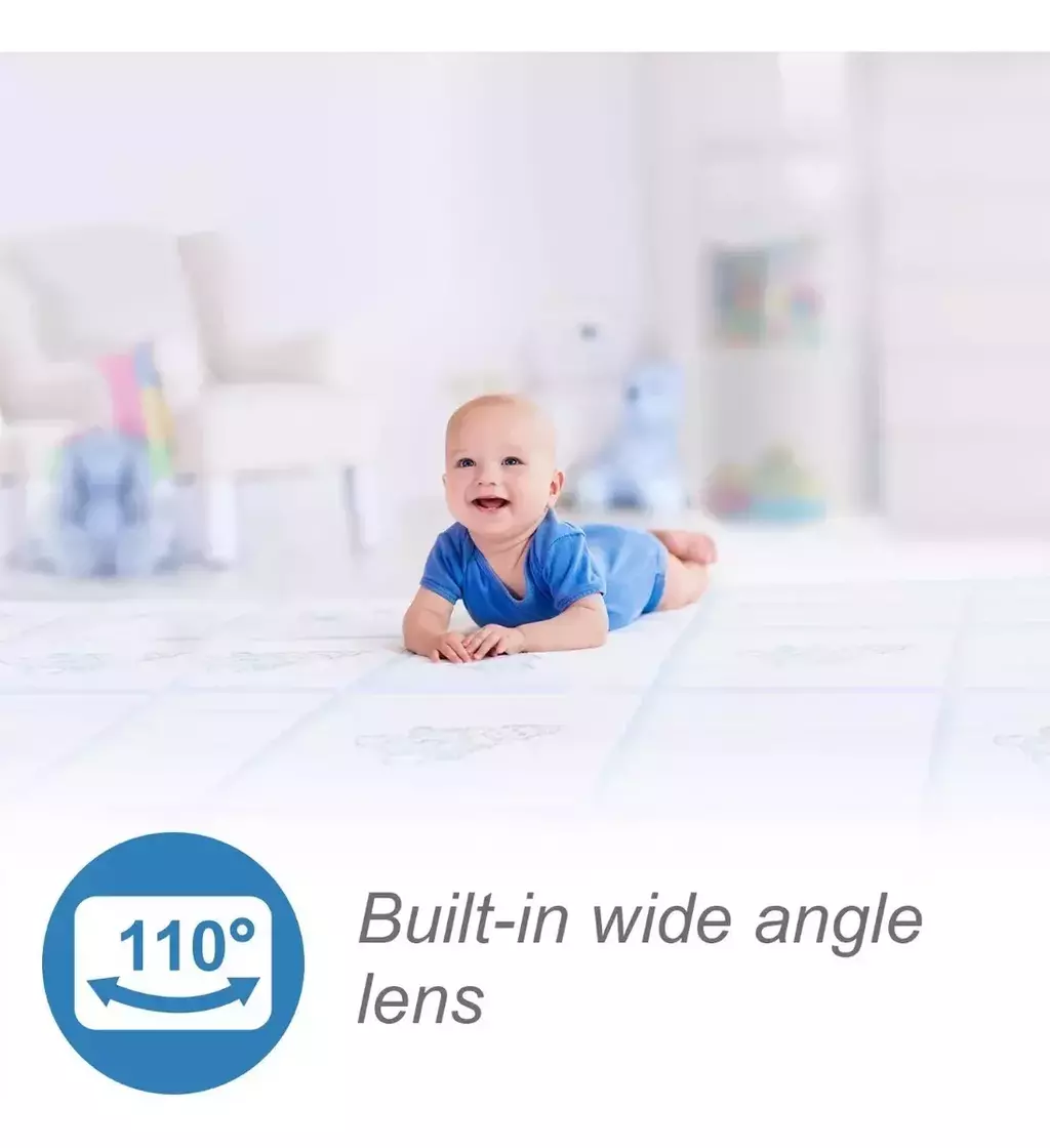 Tela LCD colorida de alta definição de 7 polegadas para ver claramente cada movimento direto da unidade dos pais. Observe como seu filho se move. Obtenha visualização panorâmica de 360 graus e veja até 110 graus para cima e para baixo.