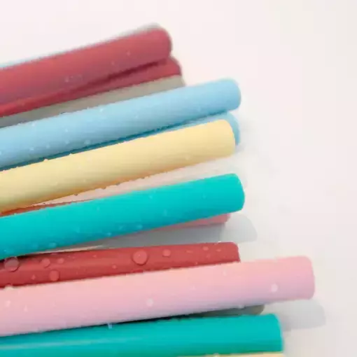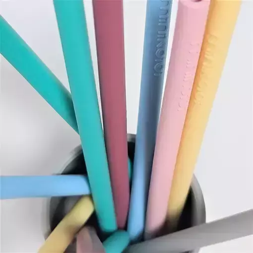Apresentamos os Canudos de Silicone Straws Boy Mix 4 Unidades da Minikoioi, ideais para os pequenos! Feitos de 100% silicone de grau alimentício, esses canudos são macios e seguros para as gengivas dos bebês.