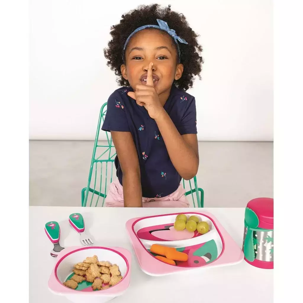Os pequenos vão adorar ter seu próprio prato com o lindo design de flamingo da Skip Hop! Este prato não apenas traz cores brilhantes e rostos caprichosos, como também transforma a hora da refeição em um momento divertido e especial.